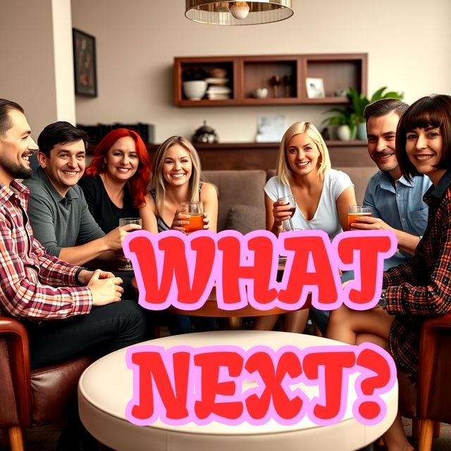 I spoke again. “We had a bit of harmless fun, no one was injured or hurt, although we may have crossed boundaries for some of us. I, for one, would be up for more parties like that, just among ourselves for privacy, but anyone who wouldn’t feel comfortable with that needn’t come.”
